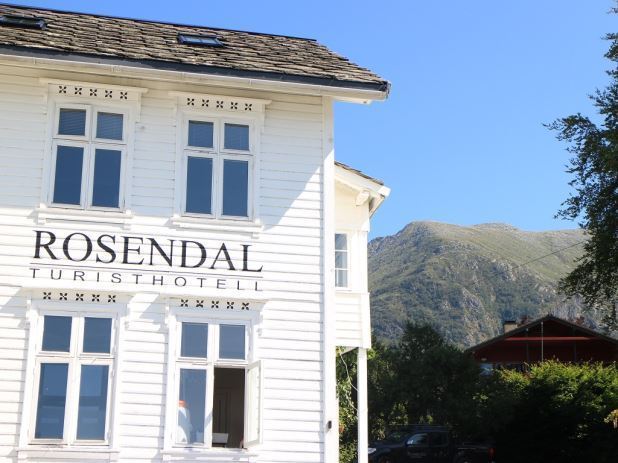 Rosendal Turisthotell is centrally situated by the quay in Rosendal. The views from the hotel over the fjord and the mountains are magnificent. The hotel was originally built in 1887, and has been extensively refurbished, inspired by the local nature and the beautiful surroundings. Rosendal Turisthotell has 21 rooms. On the second floor there are 8 newly renovated en suite rooms of different sizes, and some with their own balcony. At the first floor there are 13 rooms (single/double/family rooms) with shared bathrooms and toilets. Breakfast is served in the hotel restaurant.